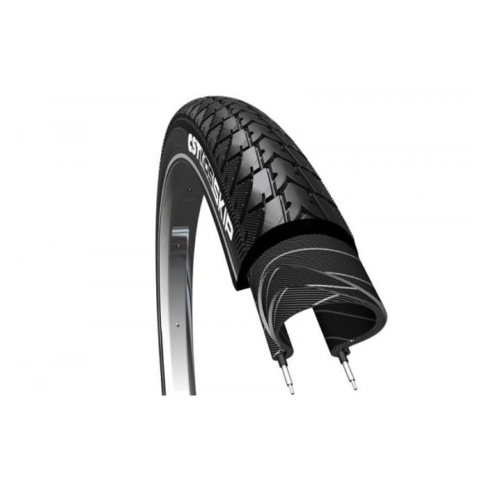 CST buitenband Skip R Zwart 24×1.75/47-507. De Skip is een typische kinderband voor kinderfietsen en jong volwassenen die niet van de harde paden afwijken. Voor gebruik op de vlakke weg en uitermate geschikt voor stadsfietsen met een sportieve uitstraling.