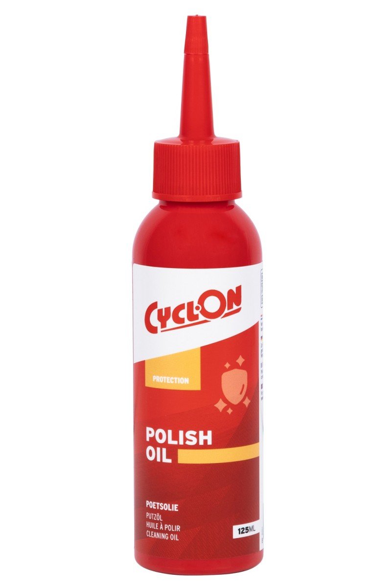 CyclOn Polishing Oil/Poetsolie 125ml. Voor het oppoetsen en conserveren van de lak en metalen delen van de fiets. Vloeit goed uit en maakt het verwijderen van vuil gemakkelijker. Geeft de lak een frisse uitstraling en is zeer gemakkelijk te doseren door middel van de druppelflacon.?Verkrijgbaar in een 125ml druppelflacon en in een 750ml verpakking., 20010