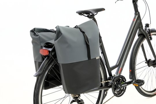 New Looxs fietstas dubbel Nyborg Nyborg, gemaakt van waterafstotend polyester, roll top sluiting en een extra ritsvak