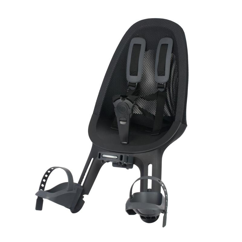 Qibbel voorzitje Air, Rugleuning van netbespanning (mesh): comfortabel, licht, ventilerend en slijtvast. Kant en klaar: kan uit de doos direct op de fiets. Geschikt voor kinderen vanaf 9 maanden tot ca. 3 jaar (of 15kg)
