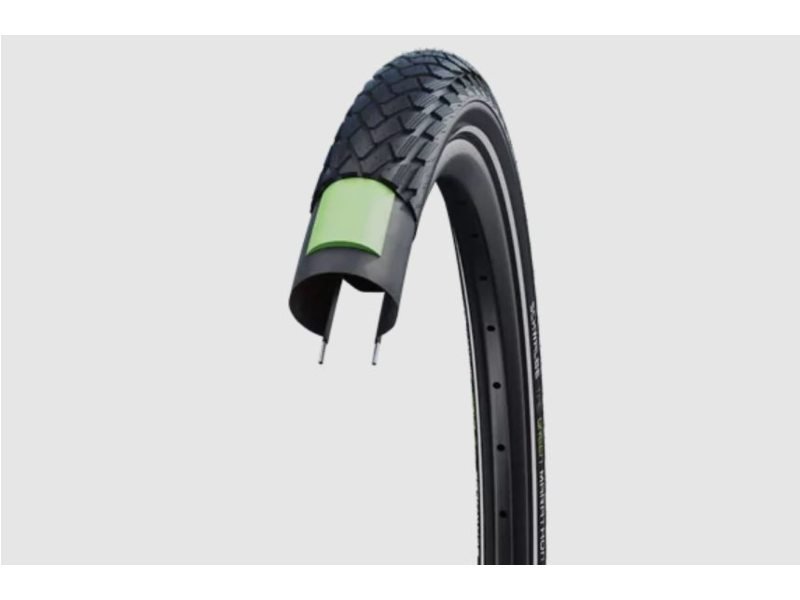 Schwalbe buitenband Marathon GreenGuard, kleur zwart met reflectie in de maat 28 x 1.25, 32-622. De klassieker, de oervader van alle hoogwaardige tourbanden. De GreenGuard laag uit extreem elastisch natuurlijk rubber is 3mm dik. De GreenGuard wordt voor 1/3 uit gerecyclede latexproducten vervaardigd. De ‘Anti-Aging’ zijwand verdraagt de typische overbelasting door een te lage bandenspanning beduidend langer voordat er scheurtjes ontstaan. Deze Marathon GreenGuard is geschikt voor E-bikes tot 25km/u.