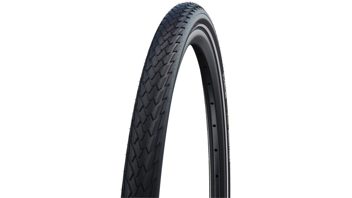 Schwalbe buitenband Marathon GreenGuard, kleur zwart met reflectie in de maat 28 x 1.50, 40-622. De klassieker, de oervader van alle hoogwaardige tourbanden. De GreenGuard laag uit extreem elastisch natuurlijk rubber is 3mm dik. De GreenGuard wordt voor 1/3 uit gerecyclede latexproducten vervaardigd. De ‘Anti-Aging’ zijwand verdraagt de typische overbelasting door een te lage bandenspanning beduidend langer voordat er scheurtjes ontstaan. Deze Marathon GreenGuard is geschikt voor E-bikes tot 50km/u.