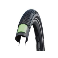 Schwalbe buitenband Marathon GreenGuard, kleur zwart met reflectie in de maat 28 x 1.75, 47-622. De klassieker, de oervader van alle hoogwaardige tourbanden. De GreenGuard laag uit extreem elastisch natuurlijk rubber is 3mm dik. De GreenGuard wordt voor 1/3 uit gerecyclede latexproducten vervaardigd. De ‘Anti-Aging’ zijwand verdraagt de typische overbelasting door een te lage bandenspanning beduidend langer voordat er scheurtjes ontstaan. Deze Marathon GreenGuard is geschikt voor E-bikes tot 50km/u.