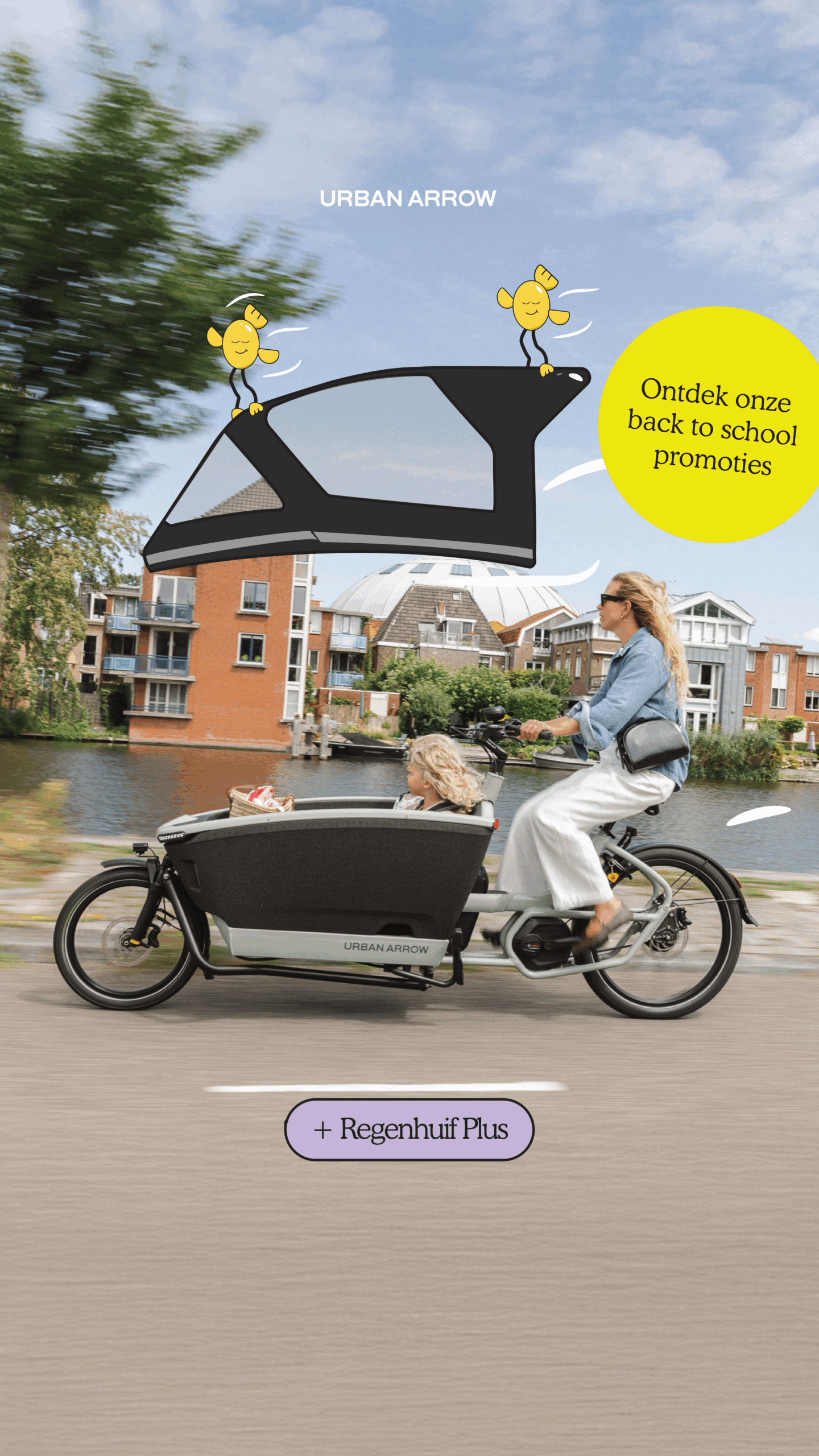 Bij aankoop van deze bakfiets ontvang je een FamilyNext Regenhuif t.w.v. €379,- cadeau. Deze promotie loopt tot en met 31 oktober 2025.