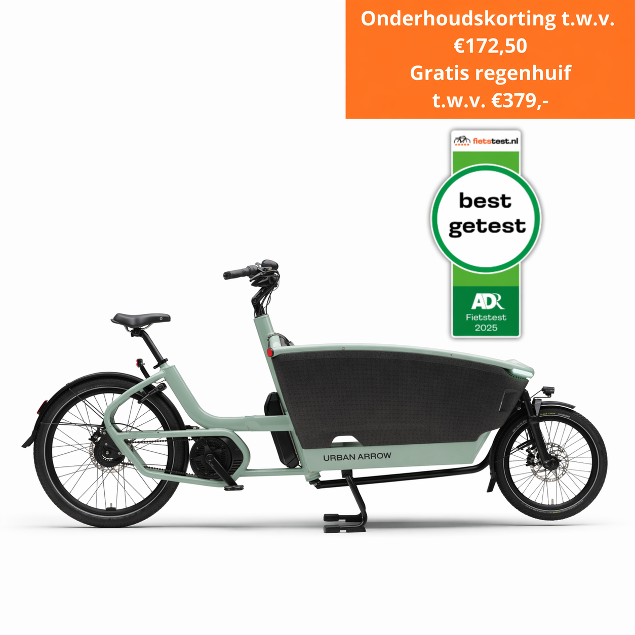 Zie de testresultaten: https://fietstest.nl/fietsen/elektrische-bakfietsen/urban-arrow-familynext-pro-2025/?gender=F